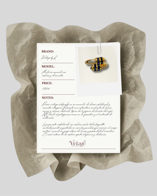Muy buena experiencia. Buscaba un anillo de compromiso con un estilo clásico y encontré justo lo que quería. El equipo de Vintage by K me ayudó en todo momento y mi pareja quedó encantada con la joya.Gracias!!!