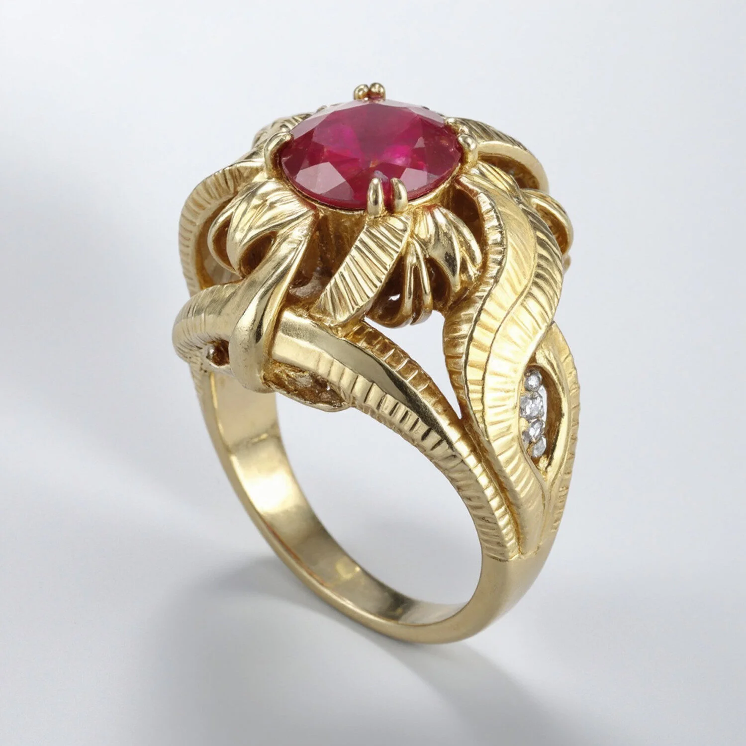 - Materiales: Oro amarillo, diamantes, rubíes, zafiros.
