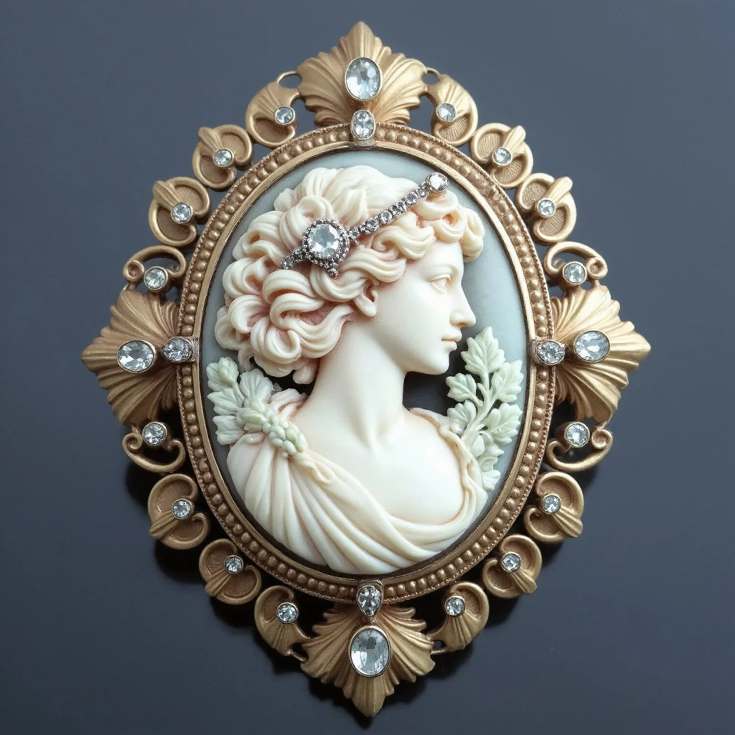 - Motivos: Camafeos, medallas, coronas, lazos, y detalles florales.