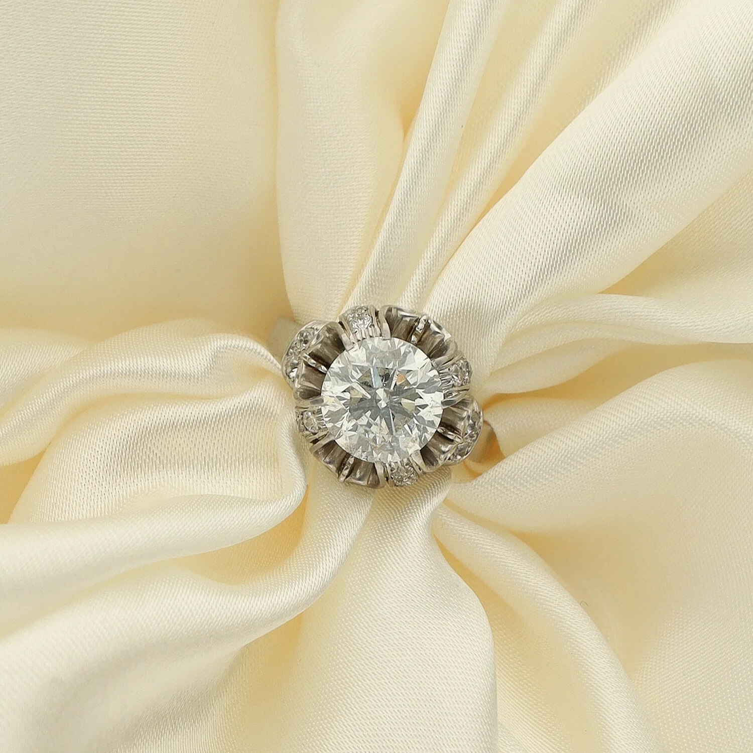 En el centro, un imponente diamante natural de 4.02 ct, talla redonda, en color H y pureza P1, brilla con fuerza y carácter.