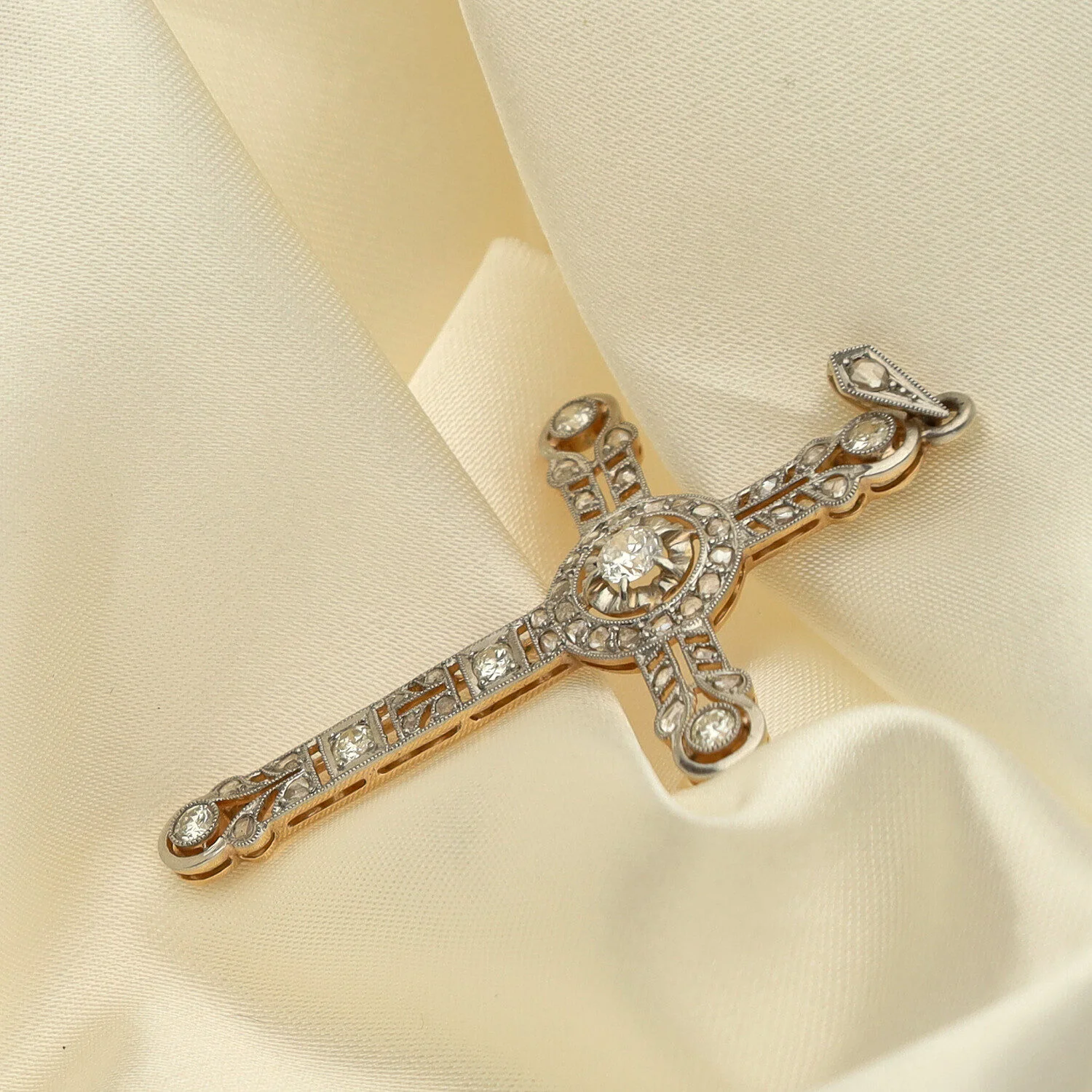 Cruz Art Déco Oro y Platino