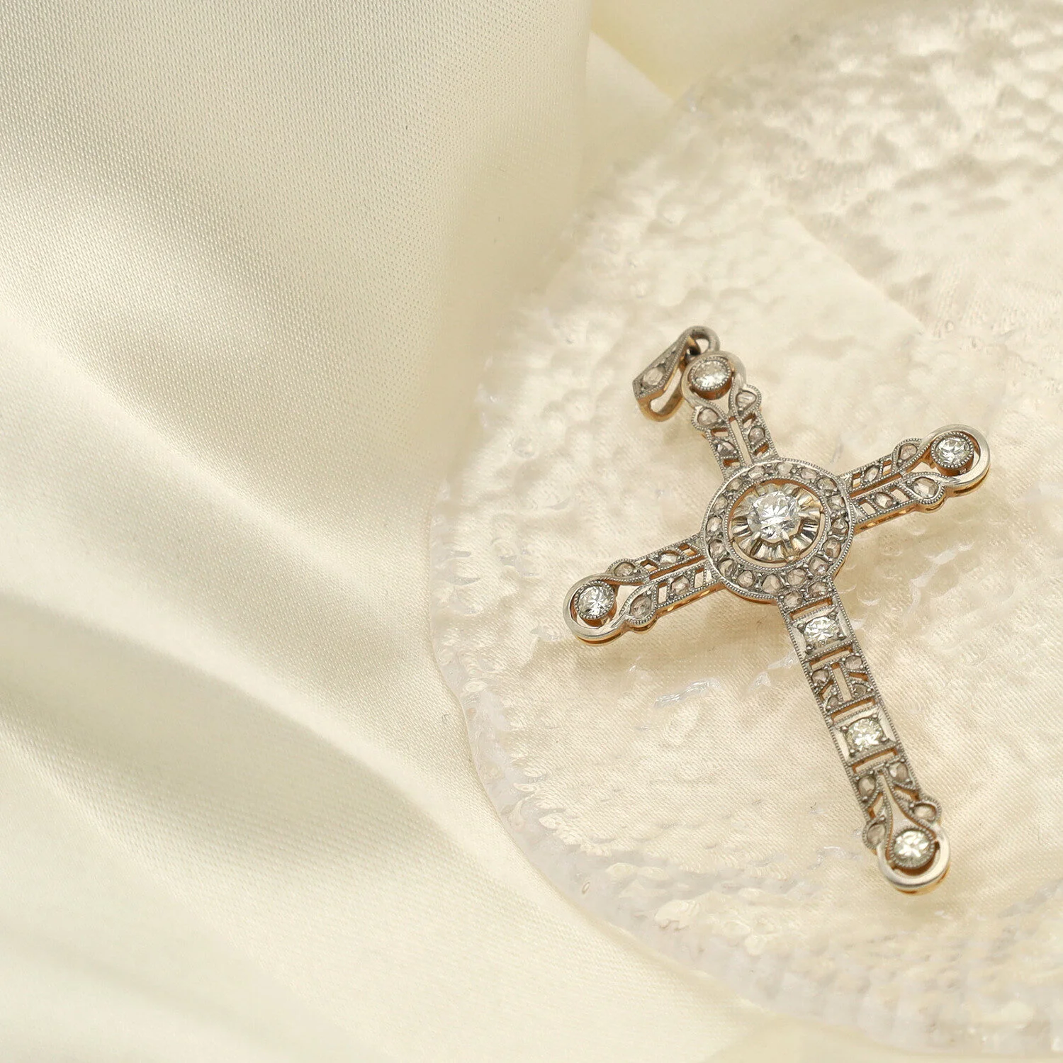 Cruz Art Déco Oro y Platino