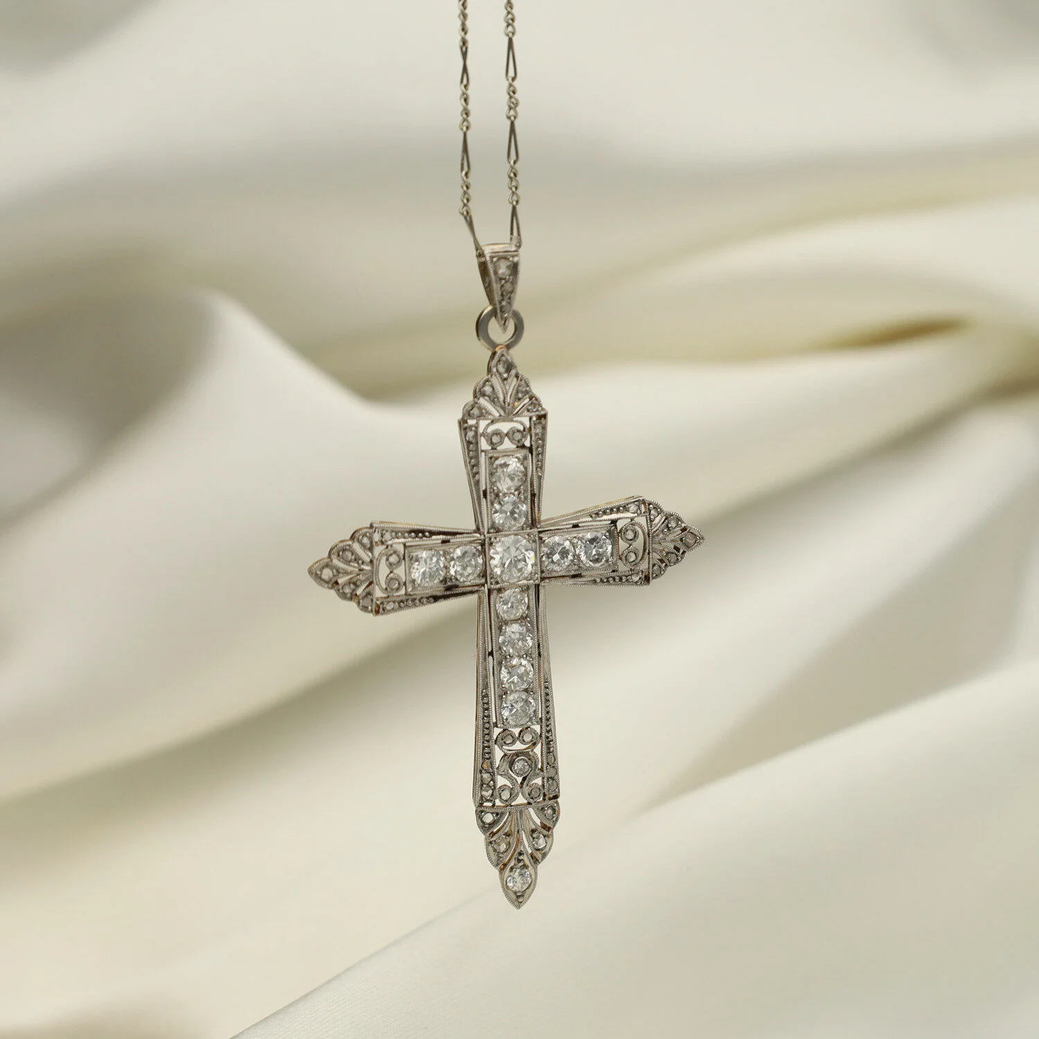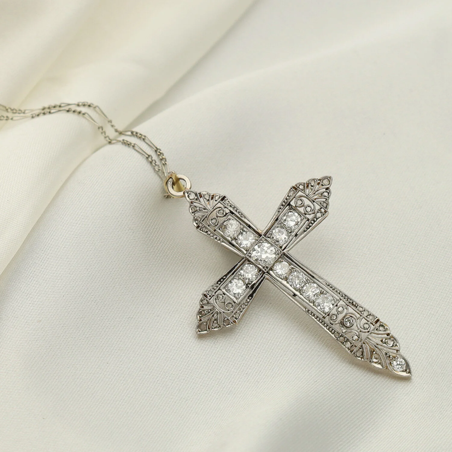 Cruz Art Déco Oro y Platino